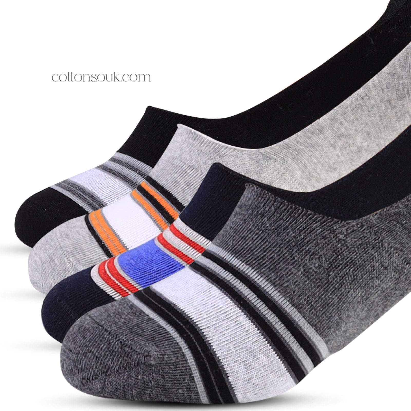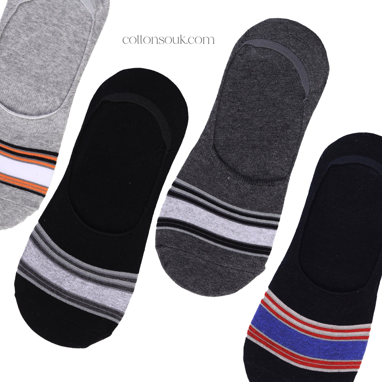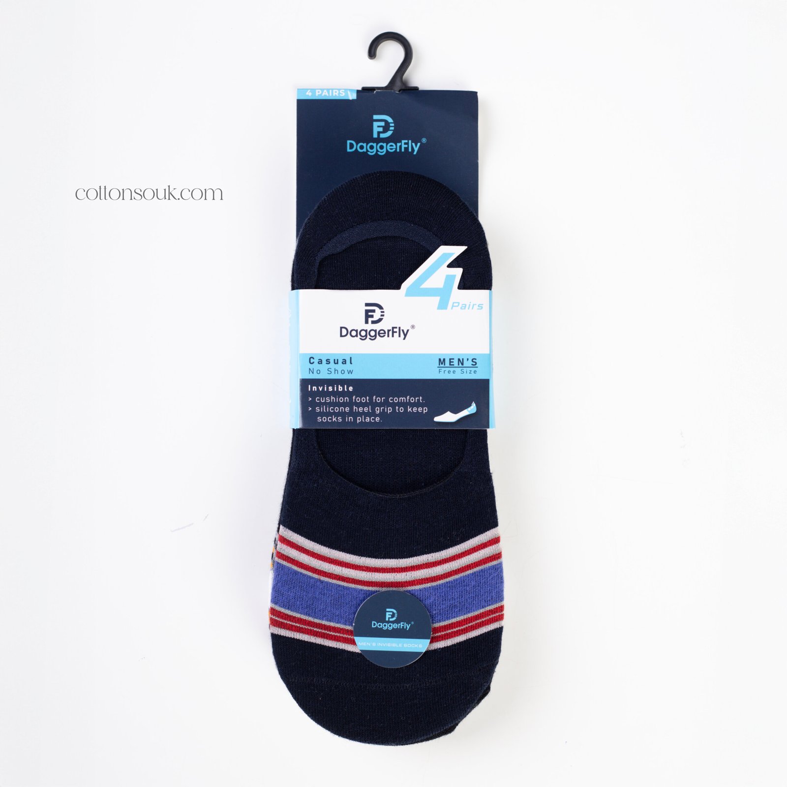Buy Daggerfly men’s invisible socks(striped)4pk free size in UAE. No-show striped socks -4 pairs ,free size socks with silicon heel grip for dry secure wear