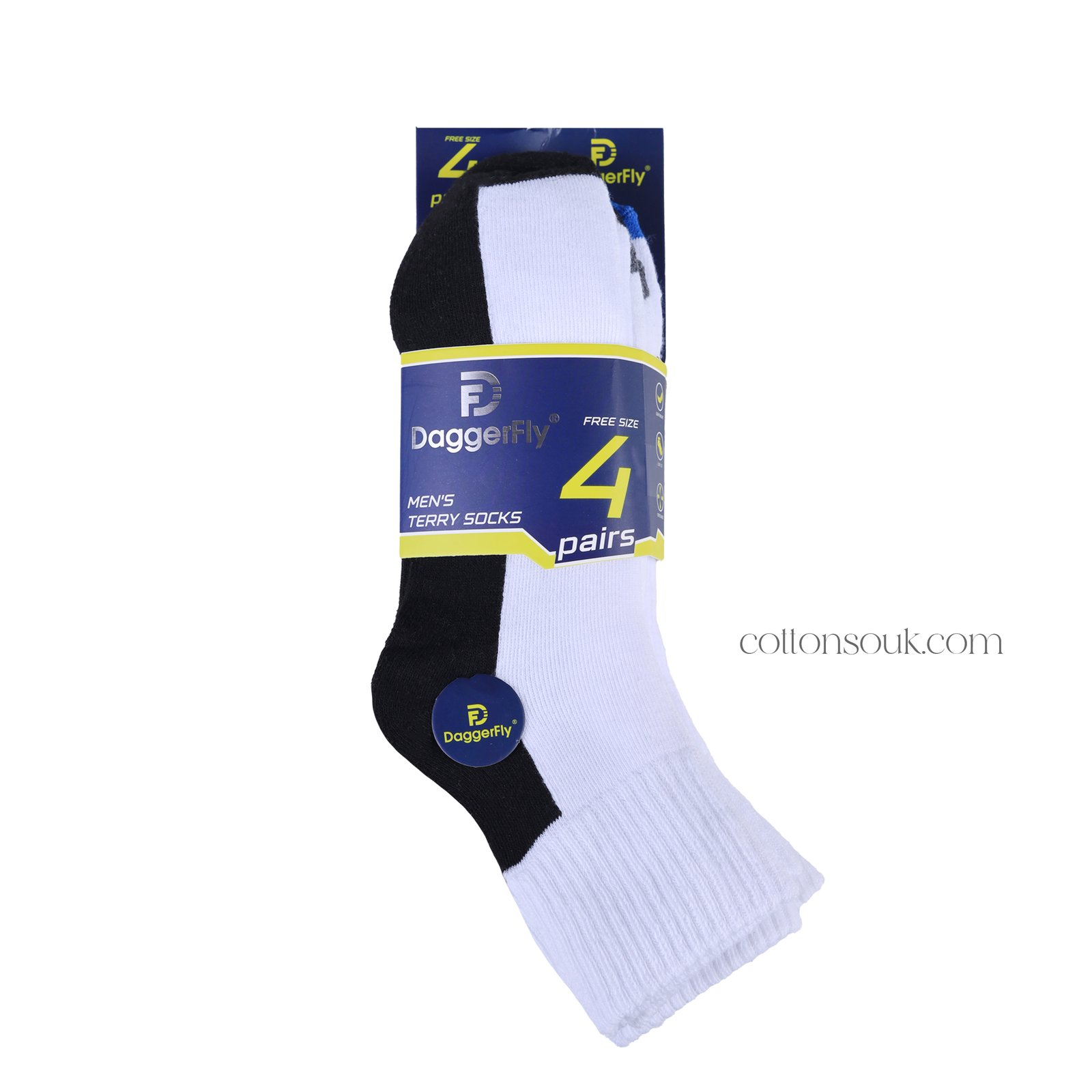 Buy Daggerfly men’s terry socks(white with detailing)4pk in UAE. Men’s terry socks, 4-pack. Low-cut, free size, white with colored accents, soft, breathable, and